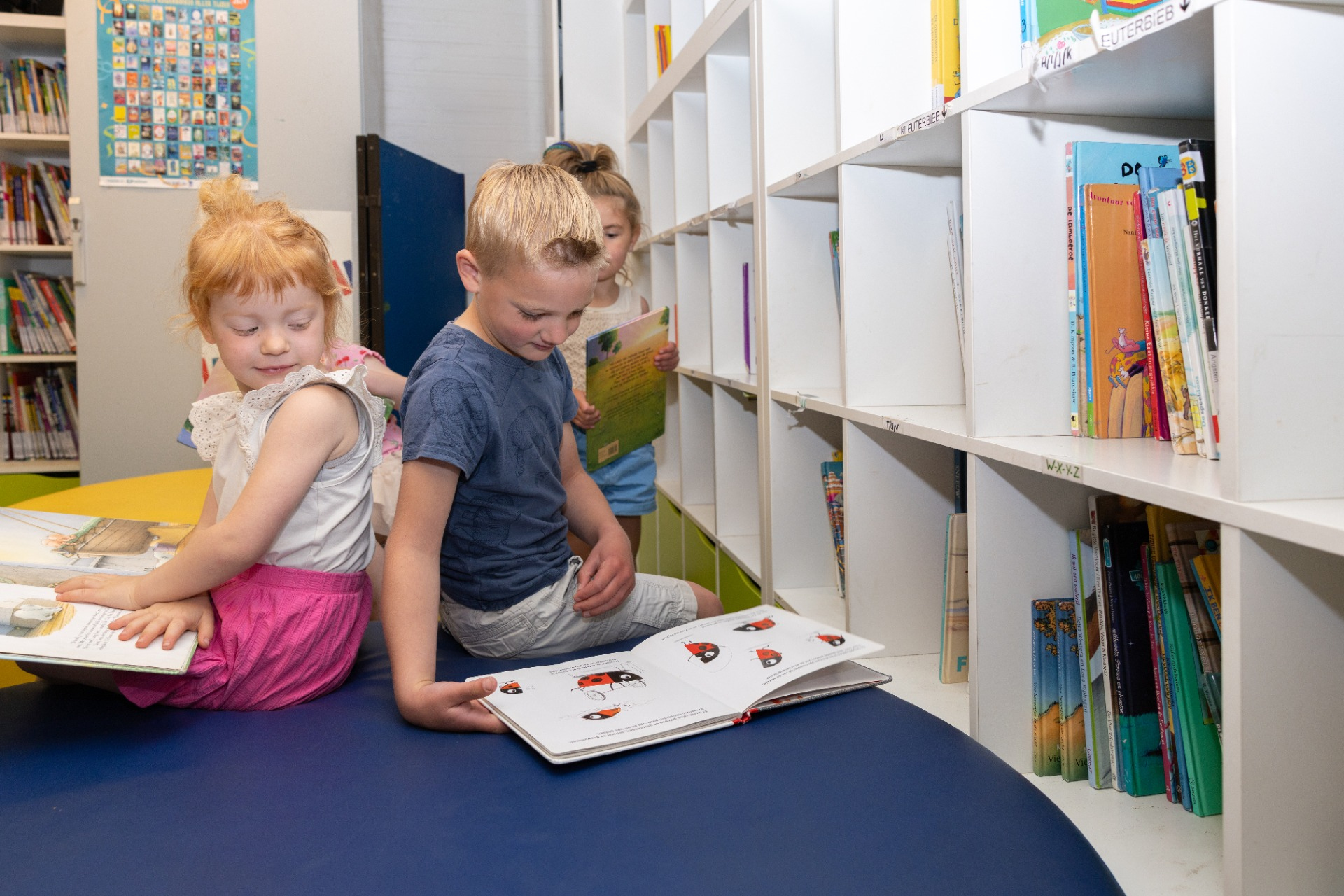 Naast het werken met computers vinden wij het erg belangrijk dat de kinderen dagelijks lezen in een echt boek. Daarom hebben we als school een prachtig leesplein met duizenden boeken die kinderen mogen lenen. Iedere ochtend is ons leesplein geopend vanaf half 9 tot 9 uur. Ouders begeleiden het uitlenen. Met regelmaat zorgt de taalcoördinator voor mooie, nieuwe boeken, rekening houdend met de leeswensen van de kinderen. Ook de kleuters maken gebruik van ons leesplein.